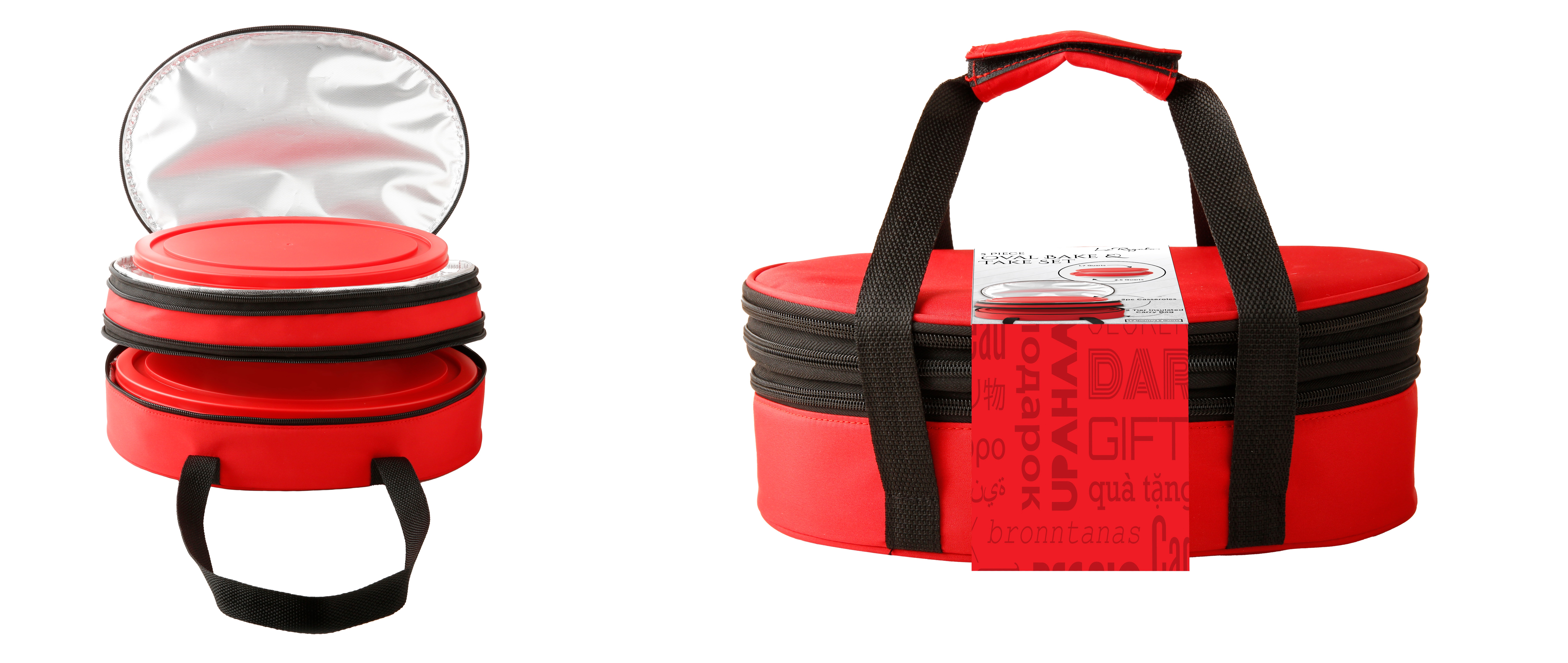 This versatile five-piece oval bake and take set makes preparing and transporting meals easy and convenient. Featuring two durable glass casseroles with lids and a two-tier insulated carry bag, it’s perfect for baking, serving, and taking dishes on the go. Designed for everyday use, the casseroles are oven, microwave, freezer, and dishwasher safe, making this set a reliable choice for busy kitchens and gatherings.