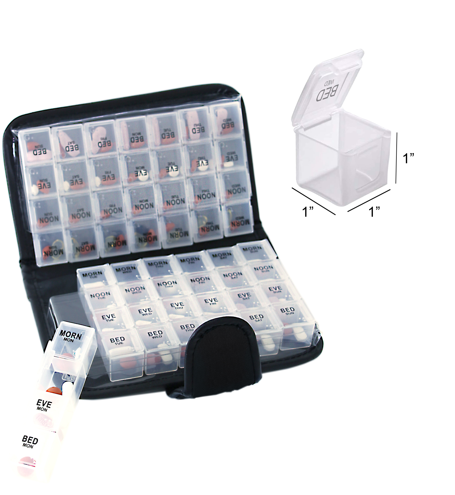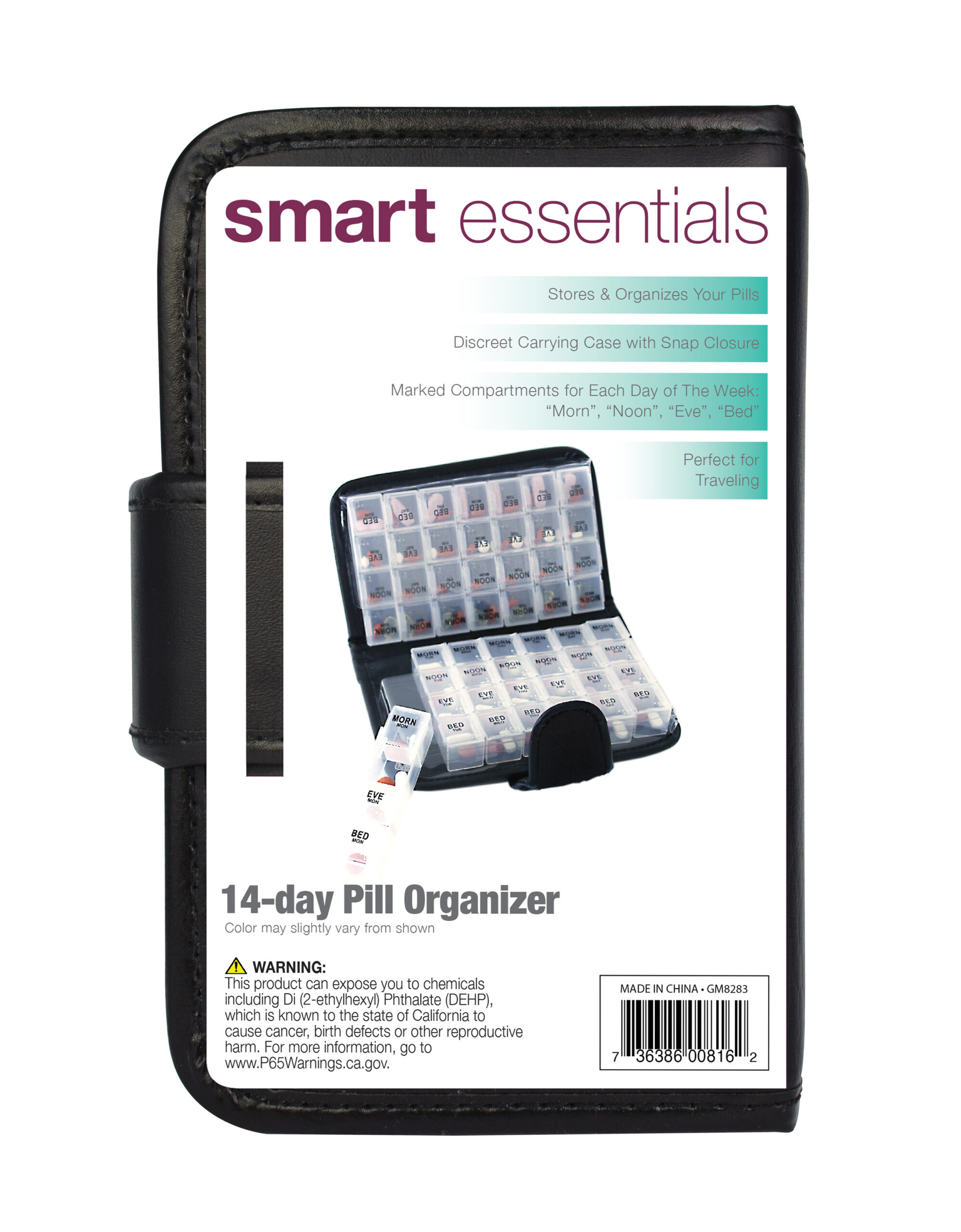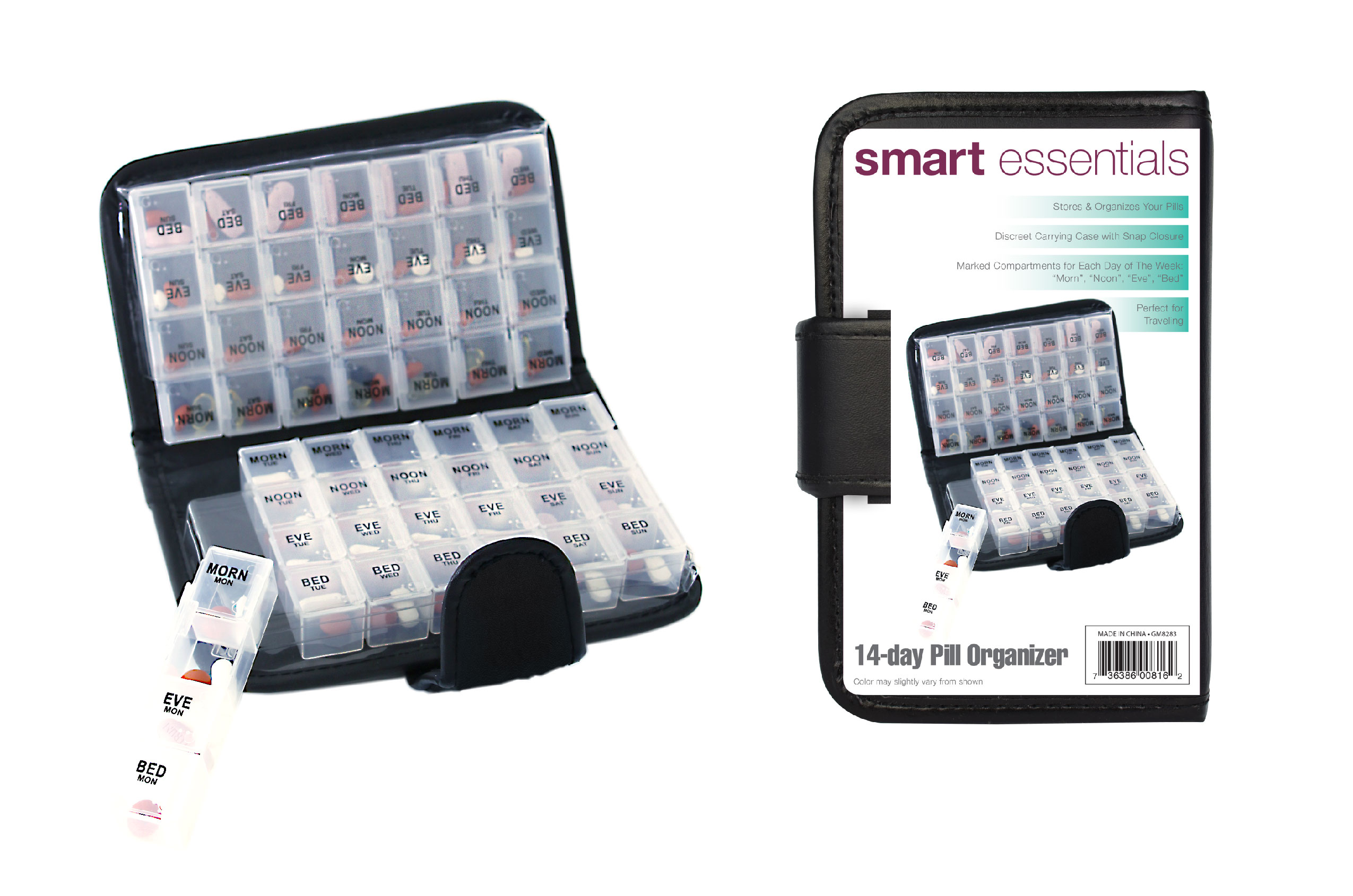 This compact 14-day pill organizer is designed to keep your daily medications neatly stored and easy to manage. Featuring clearly labeled compartments for morning, noon, evening, and bedtime, it helps you stay on track with your routine without confusion. The discreet snap-closure case keeps pills secure while traveling, and the removable daily containers make refilling quick and simple. Ideal for home or on the go, this organizer offers a practical and reliable solution for everyday pill management.